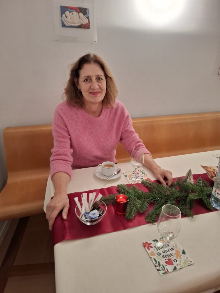 Theresia Zbinden liest, wie jedes Jahr, aus dem Büchlein «Der Mistelzweig» von Ursula Stalder-Witschi zwei berührende herzliche Geschichten vor, was alle Anwesenden immer sehr schätzen Es verleiht dem Nachmittag einen Hauch von Weihnachtsstimmung,
