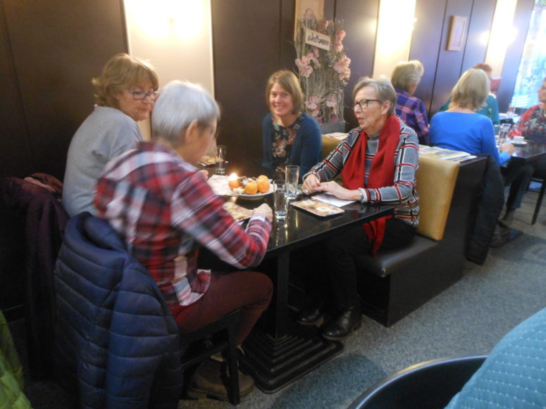 Auch dieses Jahr fand die Feier wiederum im Restaurant Puccini statt, aber etwas war doch neu dabei, wir trafen uns bereits am Nachmittag um 15.00 Uhr. Wir vom Vorstand hatten, ganz ehrlich gesagt, schon ein wenig Bedenken, ob denn da überhaupt jemand kommen würde, ob denn alle wüssten, dass die Feier eben am Nachmittag stattfindet und nicht erst am Abend, ob vielleicht am Nachmittag nur ganz wenige Frauen eintreffen und dafür viele dann am Abend vor verschlossener Tür stehen würden. Unsere Bedenken waren umsonst: 31 Frauen haben zusammen Advent gefeiert, das «Puccini» sozusagen ausgebucht, die wunderschön dekorierten Tische so ziemlich alle besetzt. Und Erika hat uns natürlich wieder verwöhnt mit wunderbaren selbstgemachten Guezli, je ein Stern, ein Tännchen und eine Blume hat Erika für jede von uns gebacken und verpackt. Ganz herzlichen Dank an dich, liebe Erika.