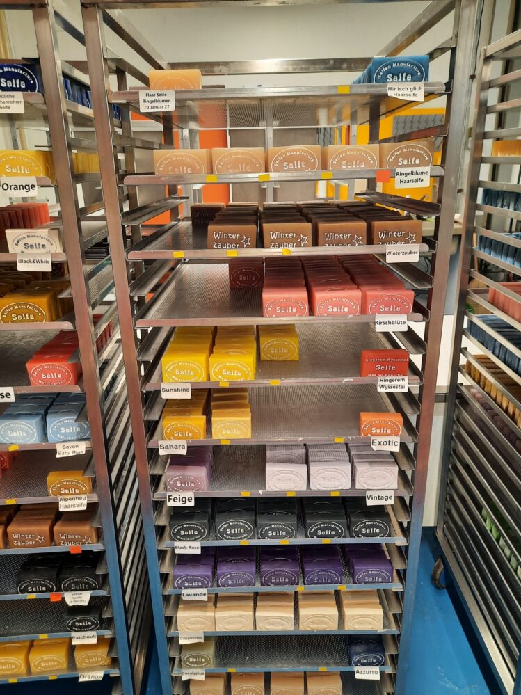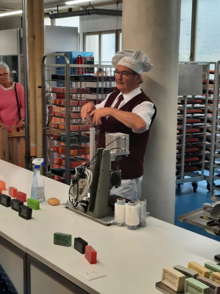 Weiterfahrt ins Seifenhaus Welschenrohr. Da haben wir so viel über Seife und deren Herstellung gelernt, einfach alles hat uns der Maître de Savon erklärt. Ich werde in Zukunft mit jedem Stück Seife respektvoll umgehen! Haare waschen mit Naturseife, das sei die Lösung für einen vollen Haarschopf! Resultat: Verkauf von 37 Stück Haarseife, mussten aus dem Lager geholt werden, so viele Stück Haarseife hatte es im Verkaufsraum nicht. Wer mochte, konnte noch die Sonderausstellung Trachtenverband Solothurn besuchen. Als Dankeschön, oder Giveaways wie das heute heisst, haben wir alle eine Seife erhalten, nun lagen 38 sehr fein duftende Seifen im mittlerweile wieder aufgewärmten Car (37 Frauen plus Chauffeur).