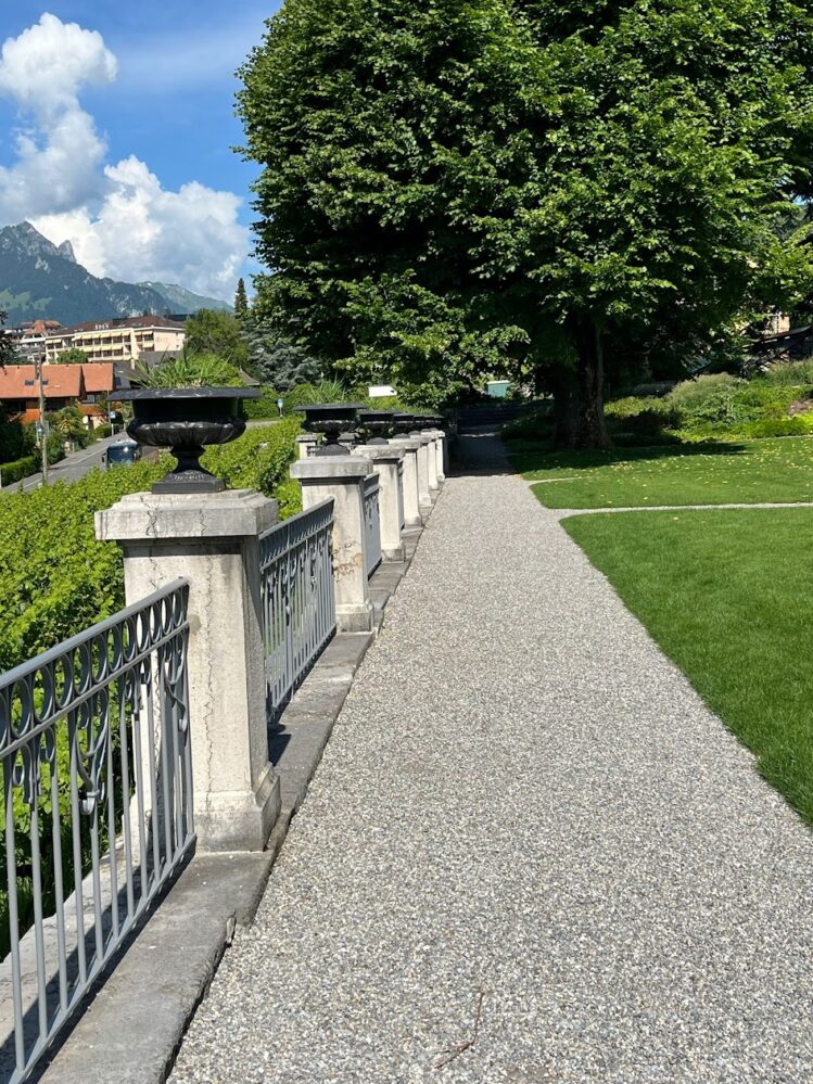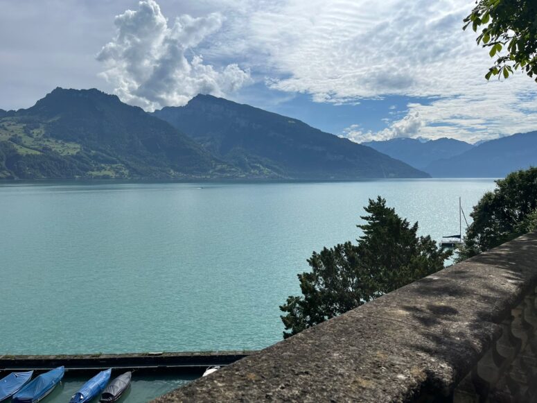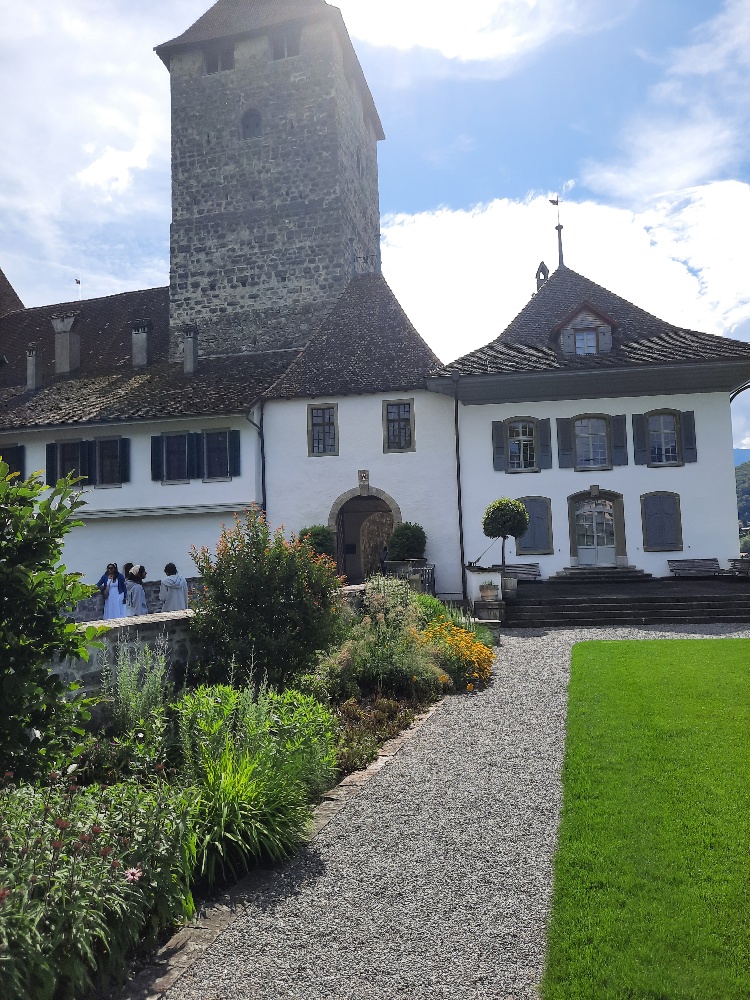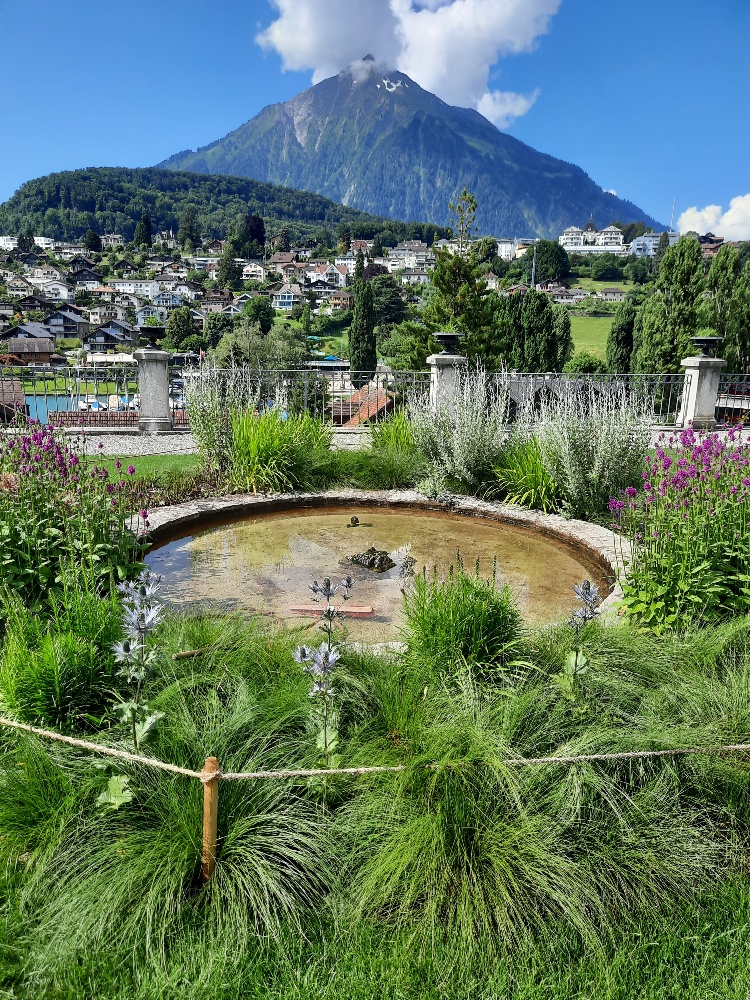 Nun geht es weiter nach Faulensee, die einen per pedes, die andern per Car. Der Wanderweg dem See entlang ist klar, nicht so wie damals beim Ausflug an den Saut du Doubs, wenn ihr euch noch erinnert! Die nicht so sportlichen geniessen einen kleinen Spaziergang am See entlang oder besuchen den Schlossgarten. 11.15 Uhr Treffen beim Car, nein nein, wir können noch nicht abfahren, es fehlt jemand!