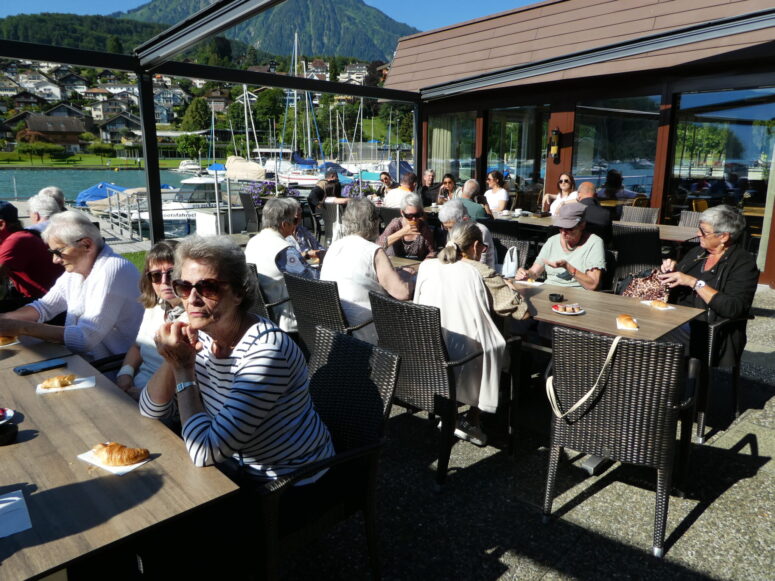 11.17 Uhr sind wir vollzählig, es geht weiter nach Faulensee. Im Restaurant Möve haben wir Platz an der Fensterfront, der Lärmpegel ist hoch, recht viele Dezibel. Das Essen ist ganz fein, Christina und Barbara haben wieder eine sehr gute Wahl getroffen.
