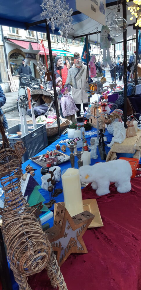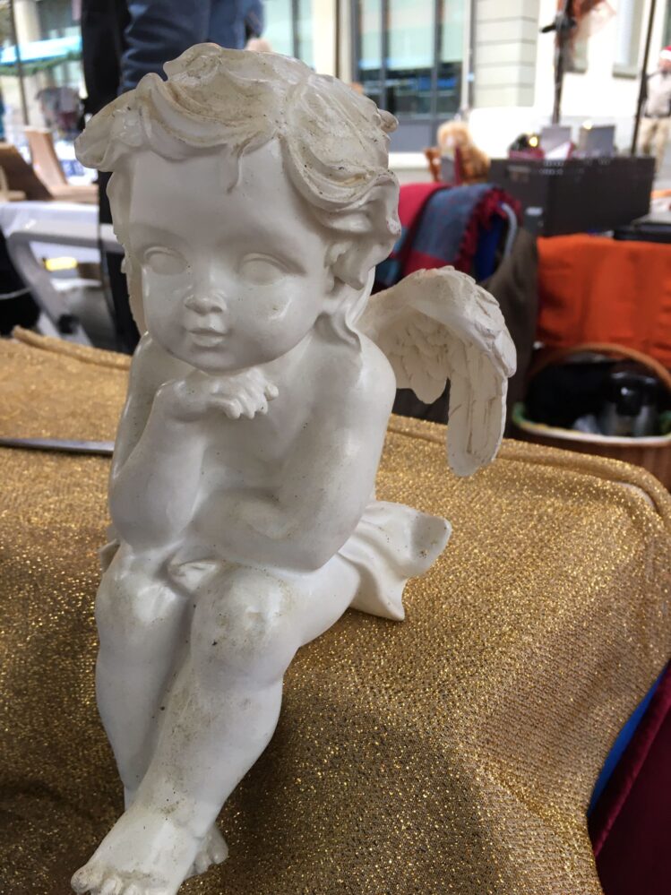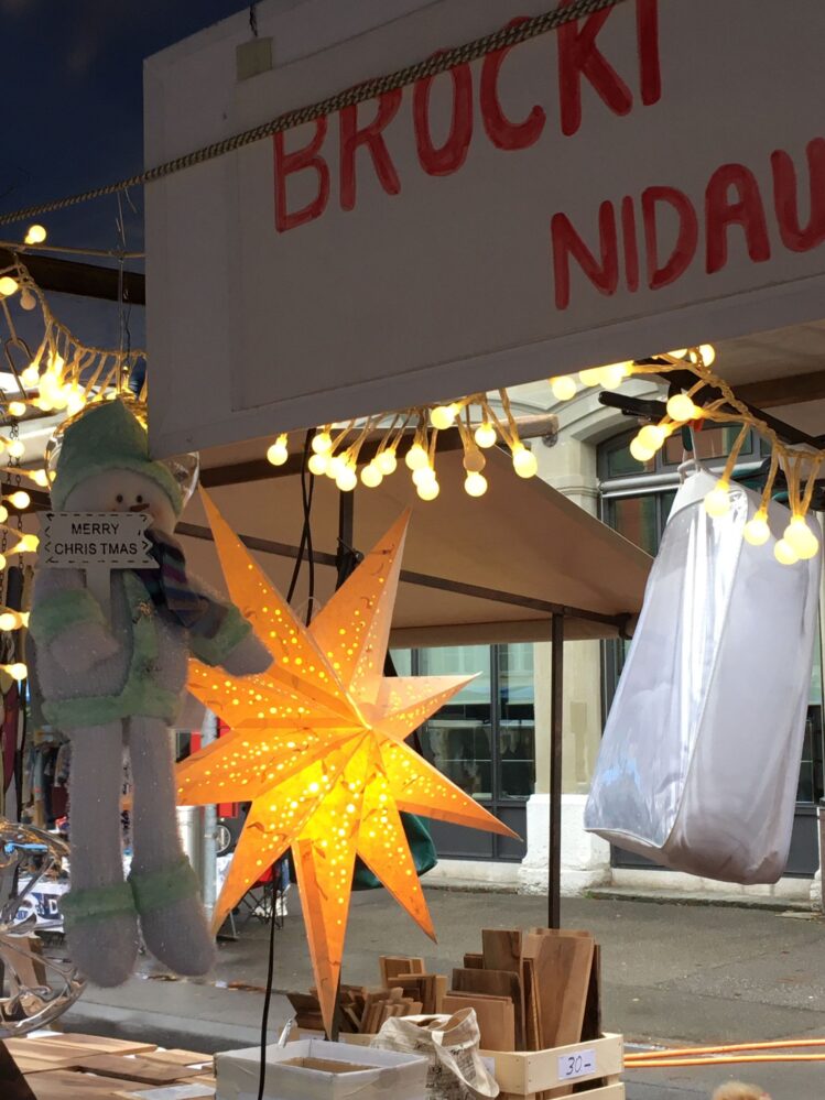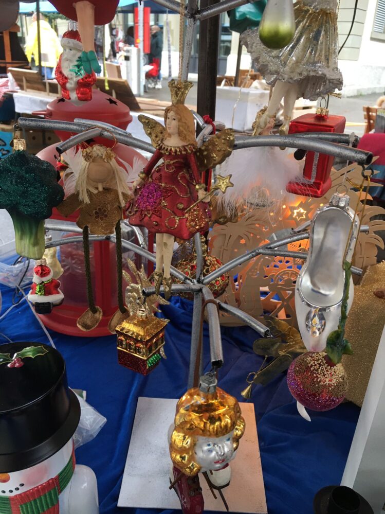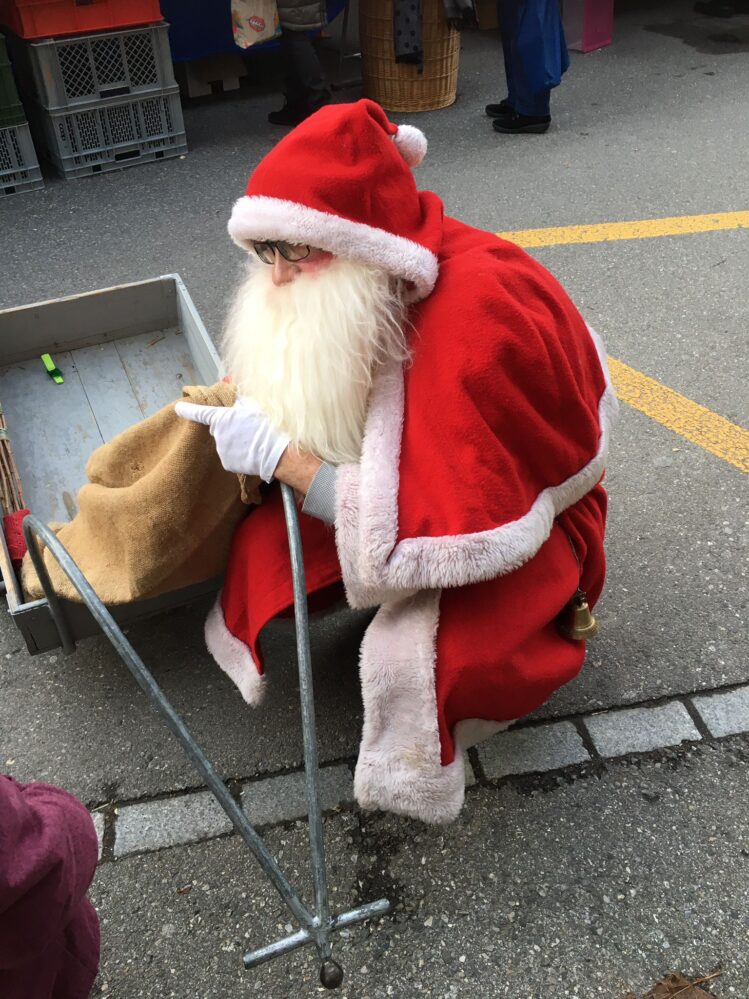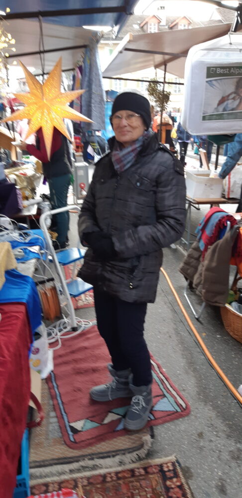Aber der Markt ist sehr schön, viele Leute unterwegs, der Verkauf am Brockistand läuft gut, sehr gut. «Wie läufts?» frage ich. «So wie immer», antwortet Elisabeth, «man braucht nichts und kauft trotzdem etwas!» Grosse Dekosachen, gehen schnell weg, Kinderbücher und Güezelidosen. Güezelidosen, das erstaunt mich doch sehr. Es ist halt nicht mehr wie früher, da haben wir Güezeli verschenkt und darum gebeten, die Dose doch bitte zurückzugeben. Heute kauft frau eine schöne günstige Güezelitrucke in der Brockenstube, füllt sie mit Selbstgebackenem und verschenkt die Trucke gleich mit, so läuft das heute.