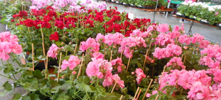 Der Blumenverkauf läuft nun doch auf Hochtouren, und dieses Jahr sind die Geranien wunderschön, kräftig und richtig parat zum Einplanzen.