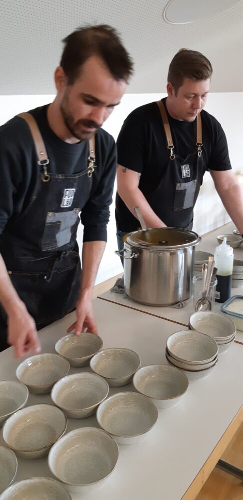 Der Caterer Michaël Fessler, Fud Läb GmbH Ipsach ist bereit, Mise en place gemacht, es kann losgehen. Wenn das so weitergeht mit den Gourmet-Menüs an unserer HV sollten wir uns dann nicht wundern, wenn sich plötzlich Personen ausschliesslich zum Essen anmelden, ohne an der HV interessiert zu sein!