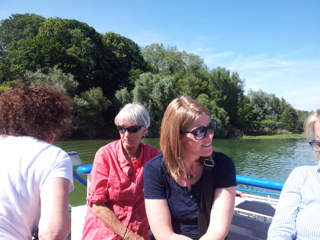 Nach dem Essen haben wir eine Stunde Zeit, man könnte spazieren gehen oder so, aber nun ist es definitiv zu heiss. Wir lassen uns nach Môtier runder kutschieren und dann per Schiff über den Murten See nach Murten. Nun ist der Sommer angekommen, es ist heiss und sehr sonnig, dankbar sind wir für den Fahrtwind. Hey, was ist denn nun los? Barbara V. öffnet den Regenschirm, sieht sie Regenwolken, die ich nicht sehe? Aber da hat es ja noch andere Frauen unterm Regenschirm, all jene, die am Morgen noch mit Regen gerechnet haben und nun eben viel zu warm angezogen sind! Das sieht ja nun aus wie in Japan, wo kein Sonnenstrahl die Frauen treffen darf, weil Sonnenbräune ein Zeichen ist, dass man zur arbeitenden Bevölkerung gehört. Dabei ist Barbara V. doch pensioniert! Die Schifffahrt ist toll, und die Heimreise mit Ruth am Steuer verläuft ohne Zwischenfall und ganz ohne Stau. Und Barbara V., die Beste aller Präsidentinnen, wirbt Chauffeurin Ruth grad noch als neues Mitglied!